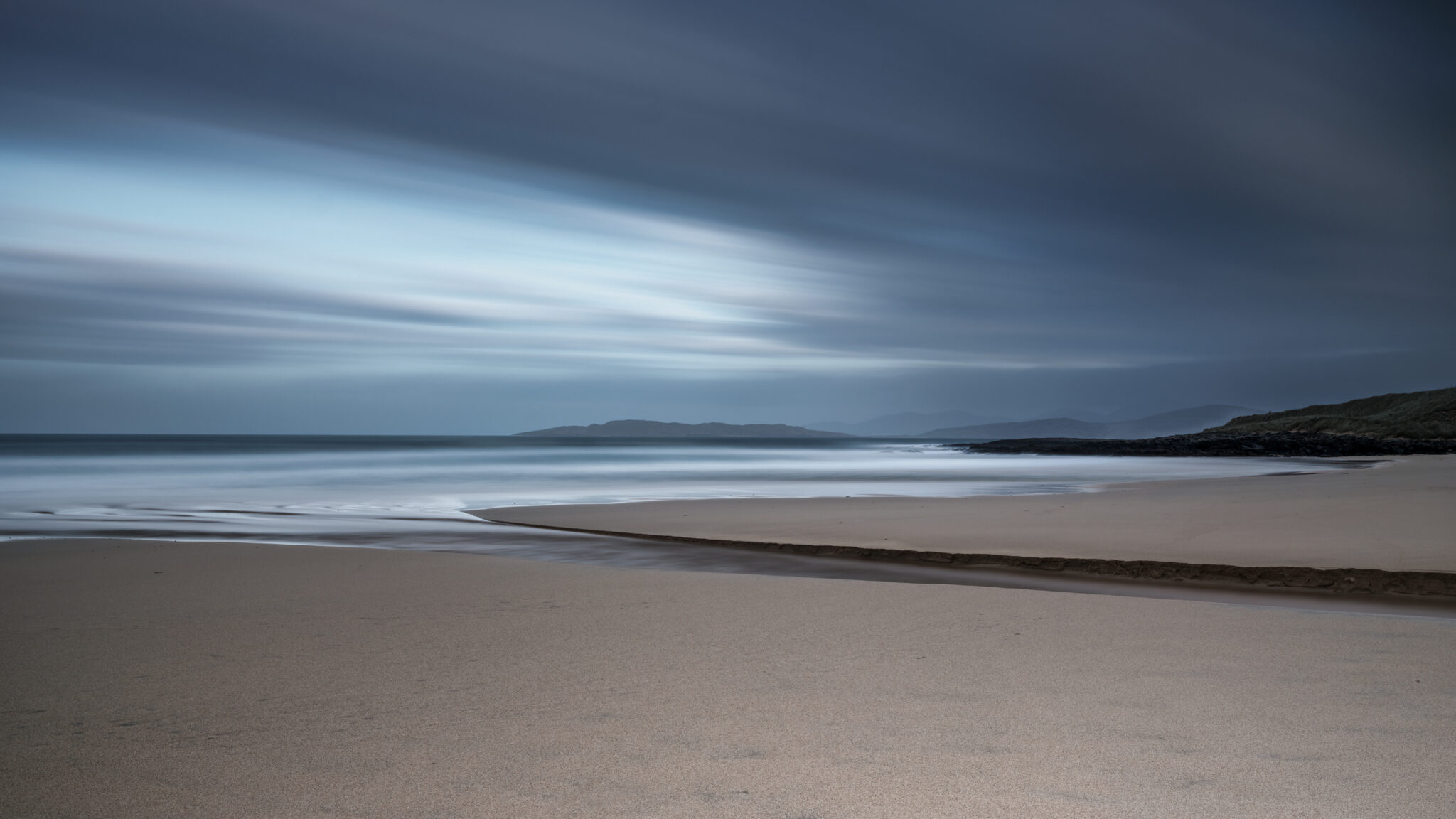 Photo of Balnakiel Beach in Scotland during a passing storm.