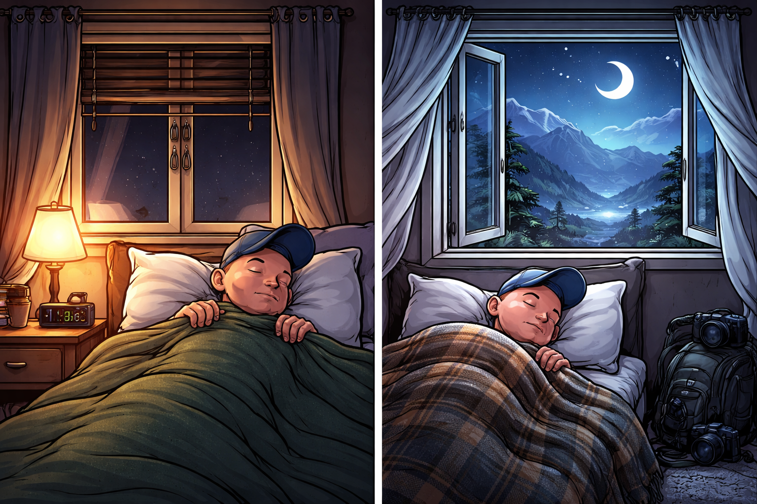 For a landscape photographer, this is bliss. The outside world isn’t something you escape from at night—it’s something you continue participating in, horizontally.