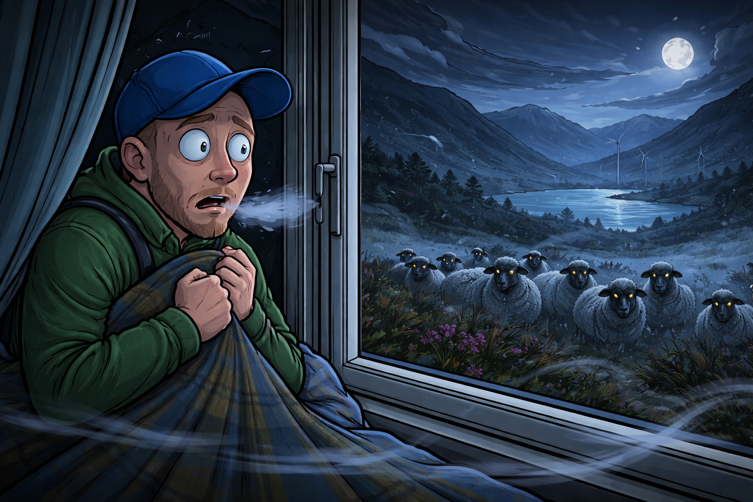 There is a particular moment—usually around 2:17am—when the romance fades. The wind changes direction. The temperature drops by several emotional degrees. And the sheep begin whatever it is sheep do in the pitch dark that sounds suspiciously like a conspiracy.