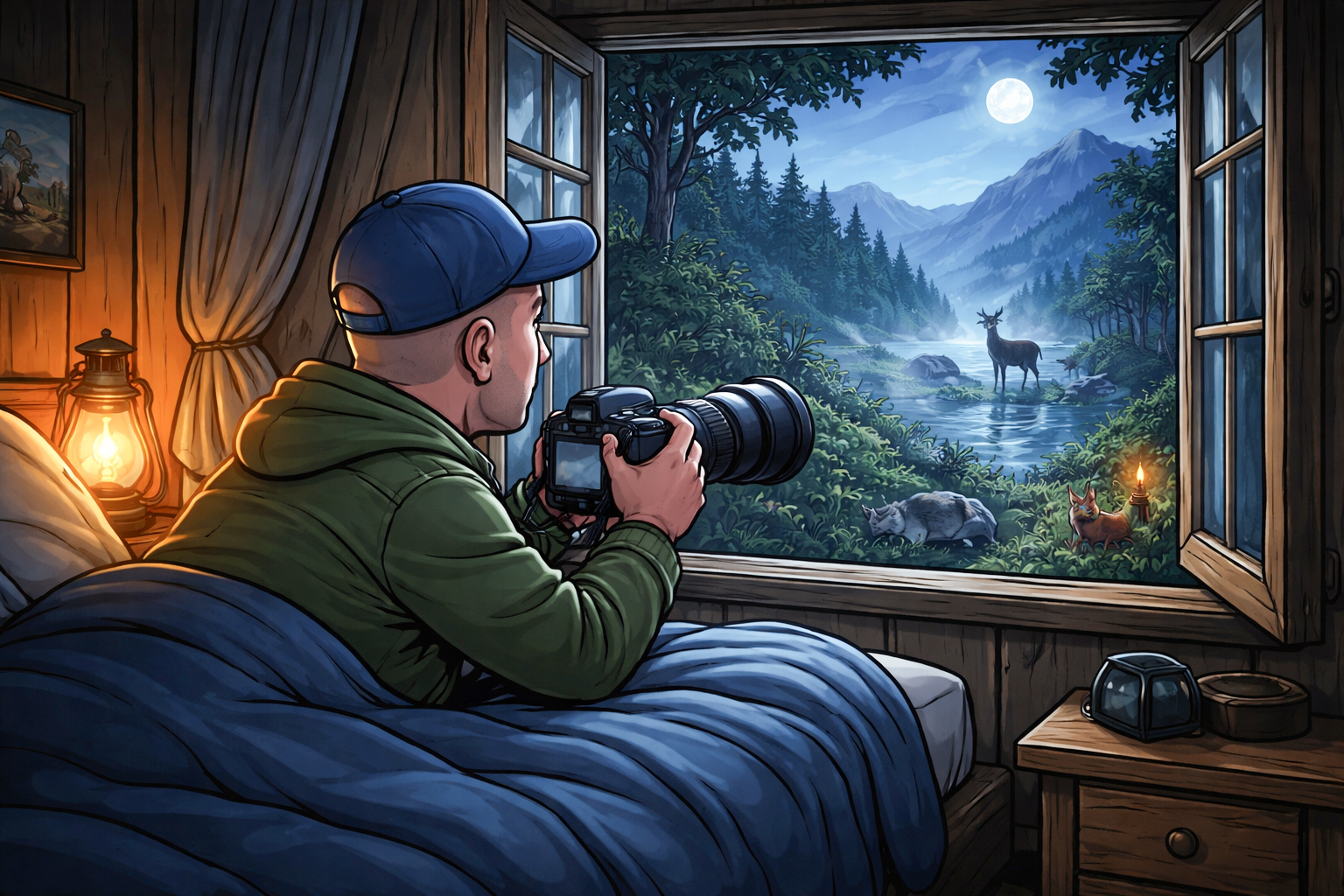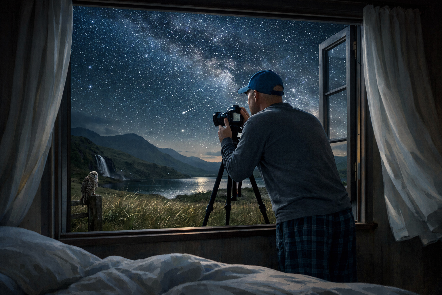 In daylight, these landscapes are vast and majestic. At night, they are vast and imaginative. The open window acts like a portal—reminding you that the wilderness you admired through your lens is still very much out there, doing wilderness things.