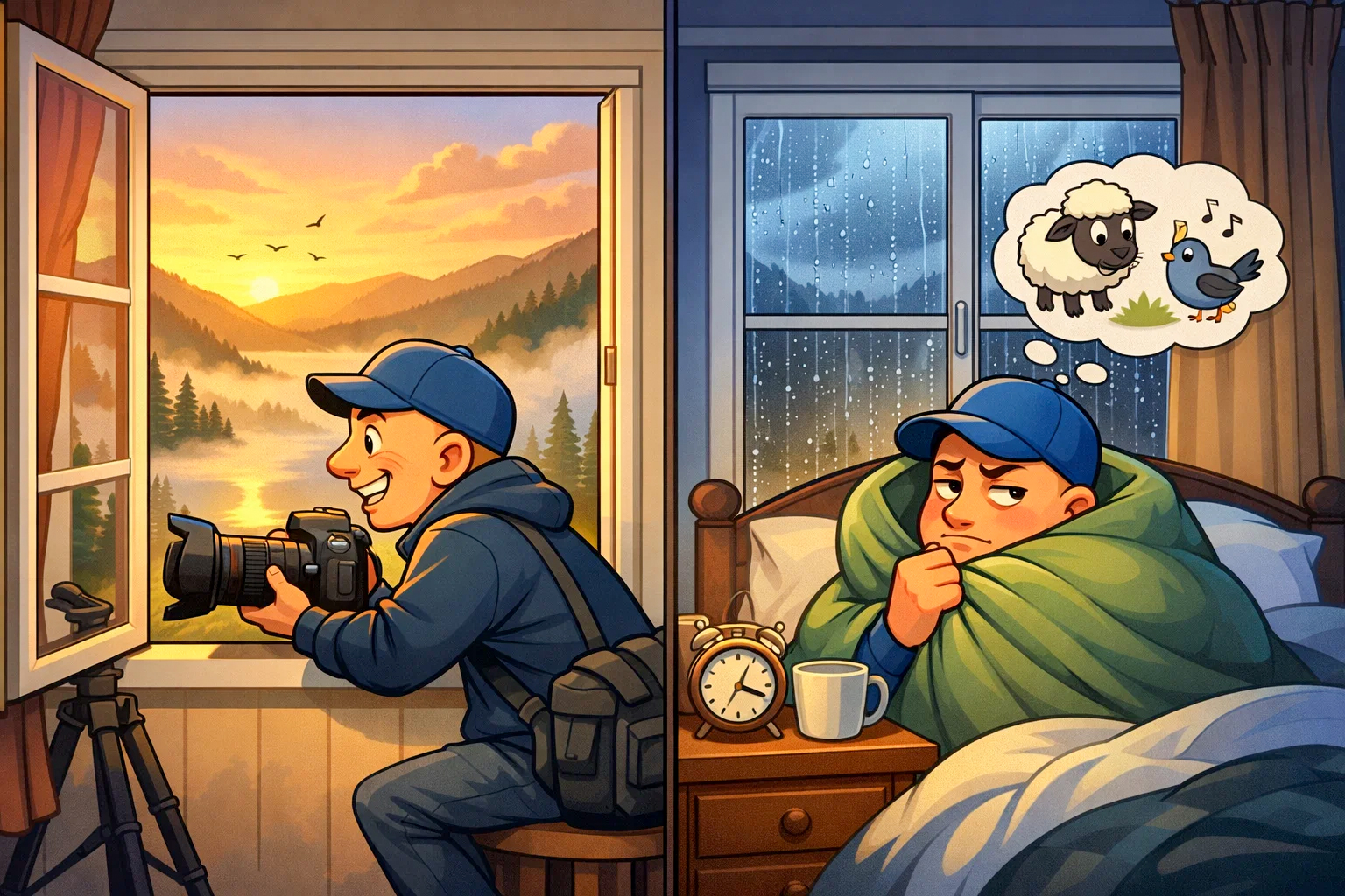 If the forecast suggests “character-building conditions,” the window is closed with the quiet efficiency of someone who values dry bedding.